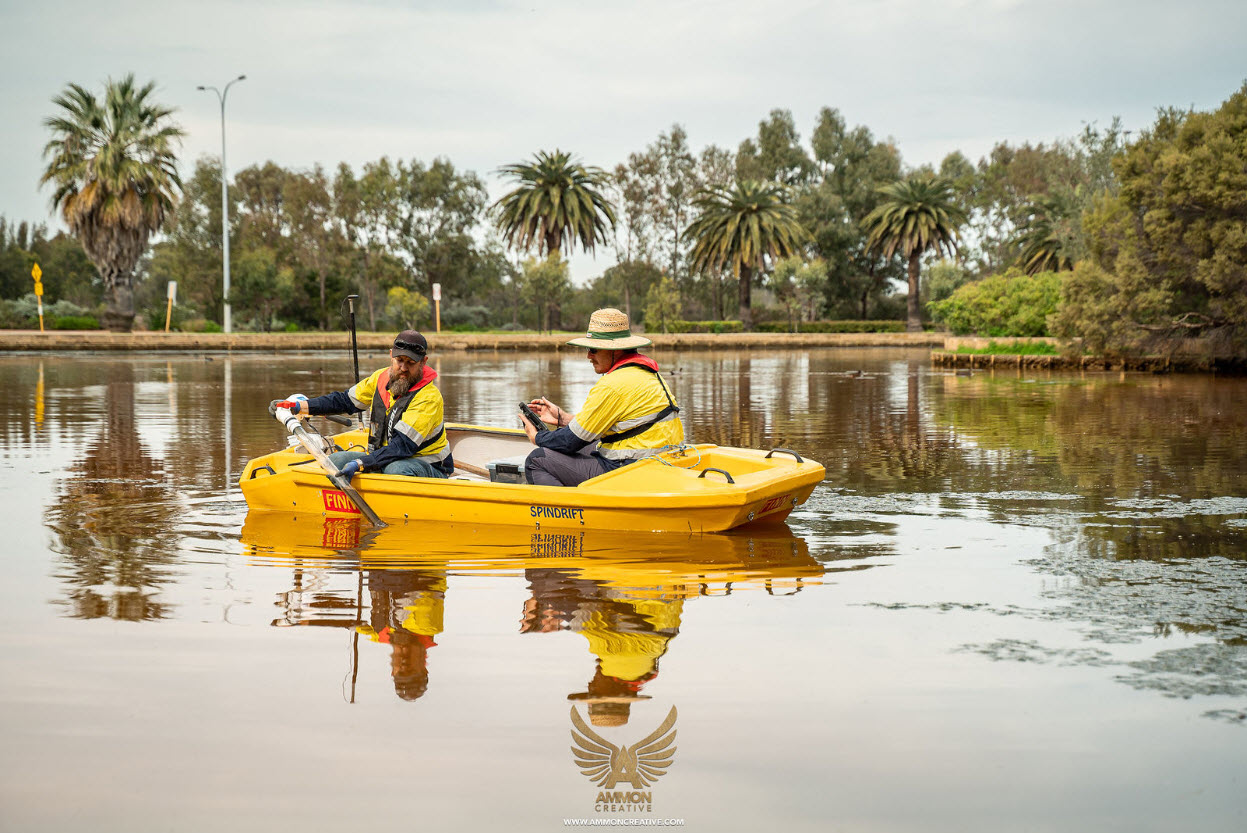 West Lake (near the Narrows bridge) in the heart of Perth CBD underwent Phoslock application as the lake was showing signs of being over-enriched with naturally occurring nutrients.